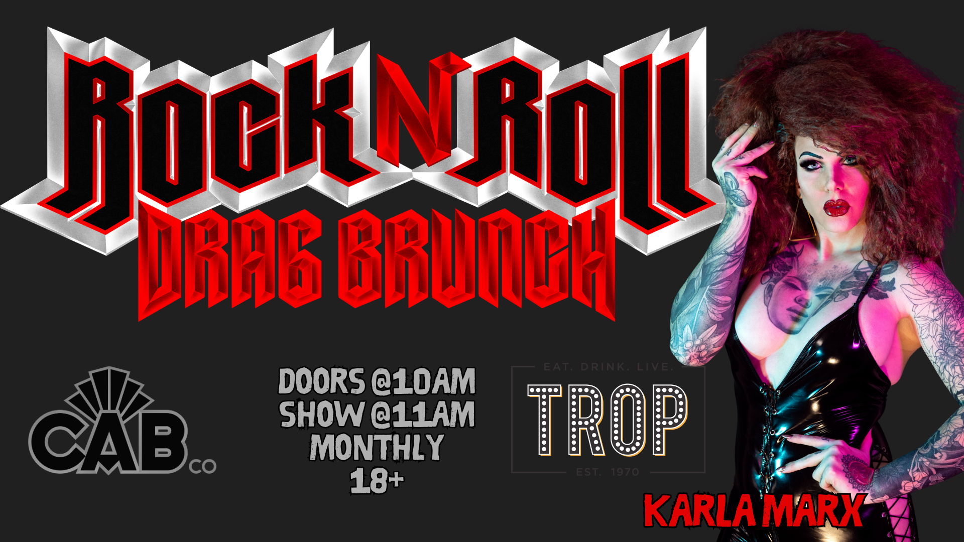 KICK IT OUT with pancakes, sausage, and drag at the iconic rock n roll hot spot, The Trop! Monthly Secure your spot for brunch at The Trop while a WILD line up of drag rockstars make you want to head bang into your omelette