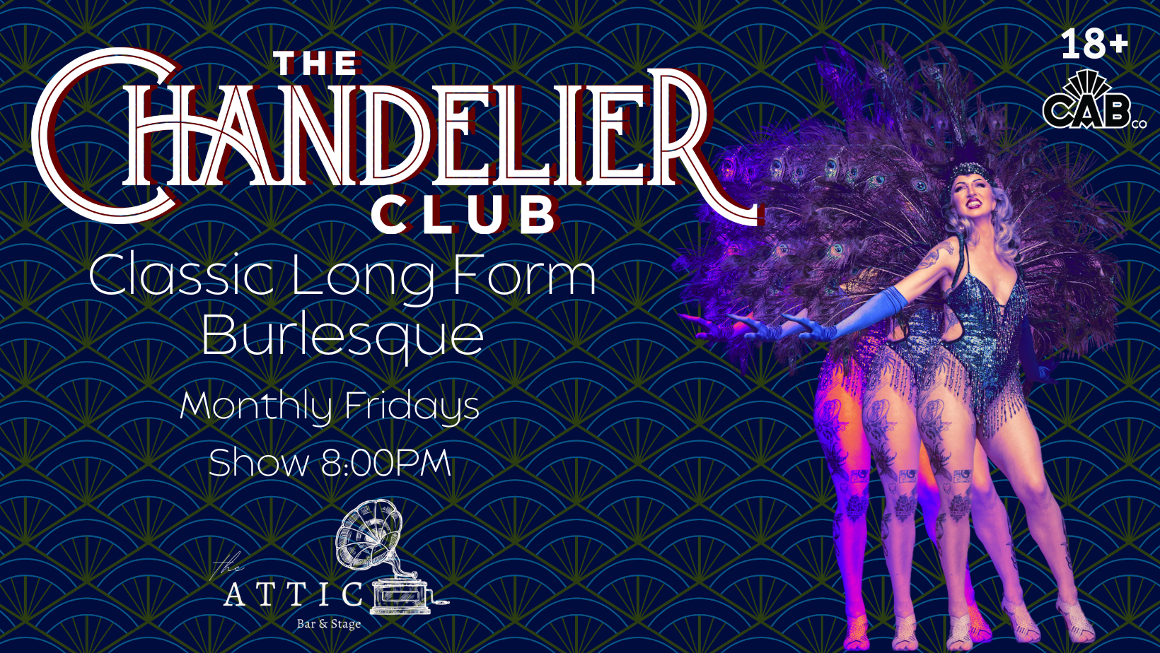 The Chandelier Club is a monthly event transporting the good people in The Attic (Inglewood) to a smoky speakeasy where the patronage is fast n'loose. Cocktails to tingle your tastebuds, and performances to tickle your...fancy, this is a night not to miss, and one you'll never forget... Do not delay