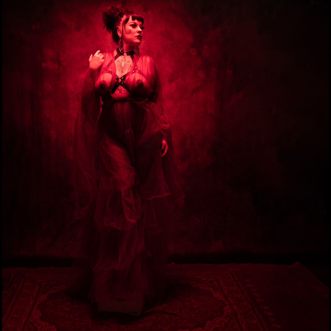 I have been part of this incredible community since 2019, when I went to my first ever burlesque show for my 18th birthday. Being a dancer for as long as I could stand on two feet, as soon as I learned of burlesque and the world of cabaret, I knew nothing would keep me off the stage. I made my solo debut in October of 2019, starting my career as a performer perfectly mixed with my love for Halloween, and I haven’t stopped since! My mother, Kara Ka-pow!, was a true inspiration to me when it came to getting involved, and when she learned I wanted to start performing burlesque, she got me my first pair of pasties and helped get me right on stage. Once I started, the part that kept me in was the amazing people that make up this community. The love, the passion and the support are thick within the burlesque community here. They want to see you on stage, light up when you do, love you for everything you bring and, most of all, they truly want to see you glow.
